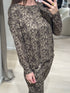 i beige med smukt brunt print.